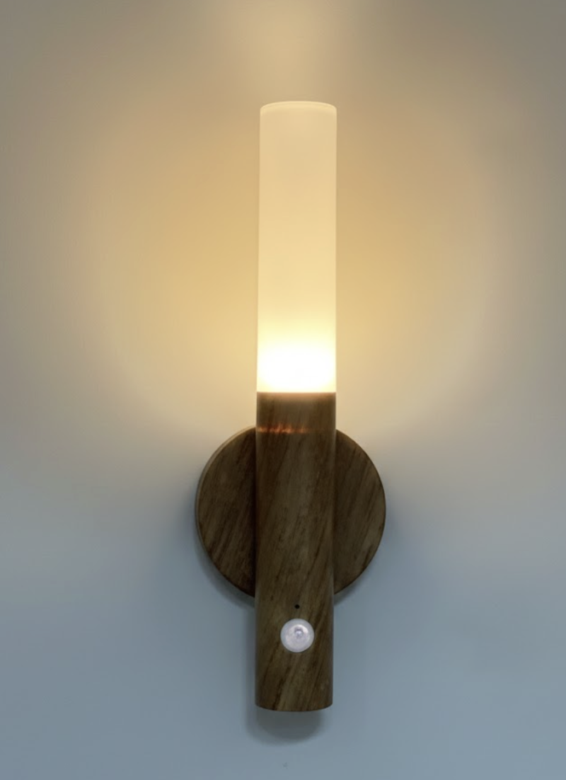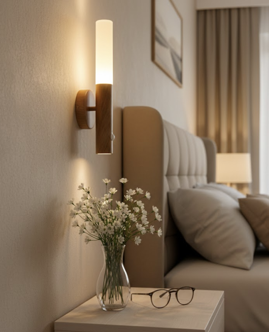 Add warmth and style to any room with this modern wooden wall lamp. Designed with a sleek vertical frosted shade and natural wood-look base, it provides soft ambient lighting perfect for bedrooms, hallways, living rooms, or cozy reading corners. The built-in touch sensor makes switching the light on and off quick and effortless.